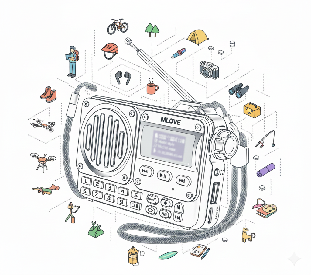 This a really nice little radio! Usb-c charging, tf card slot, usb port, auto search fm stations and bluetooth connects to phone. For $20 bucks, great deal. Small size (11cm x 7cm) makes it easy to tuck in a backpack or bag!